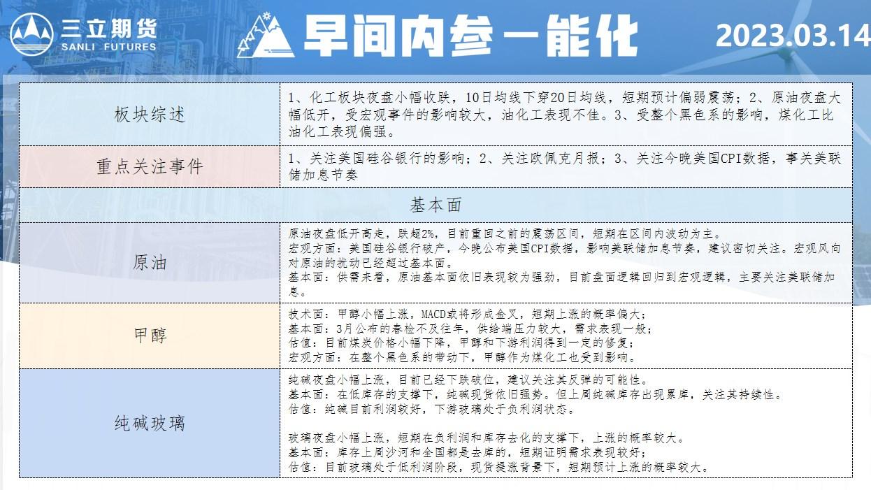 标题:三立期货3月14日早间内参——能化