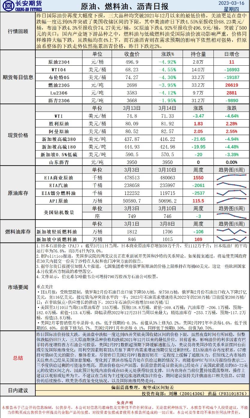 标题:长安期货原油早评:价格将偏弱震荡整理,建议观望或区间短差