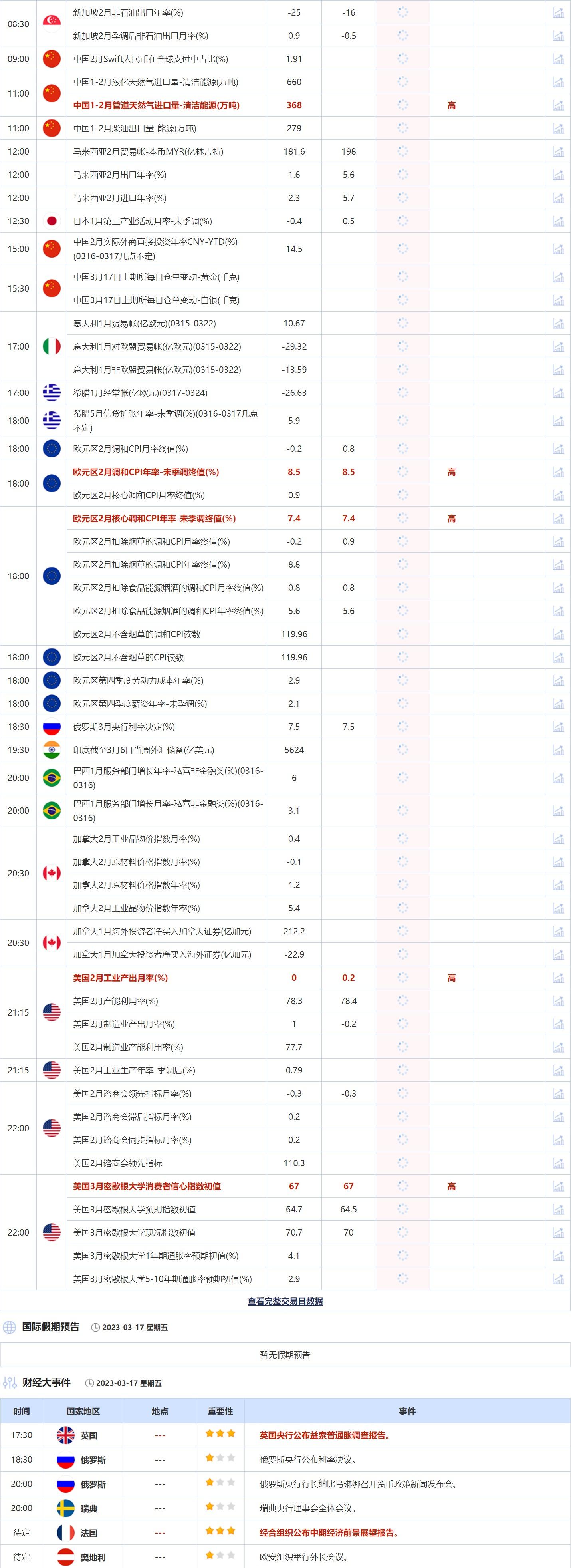 标题:3月17日重点数据和大事件前瞻