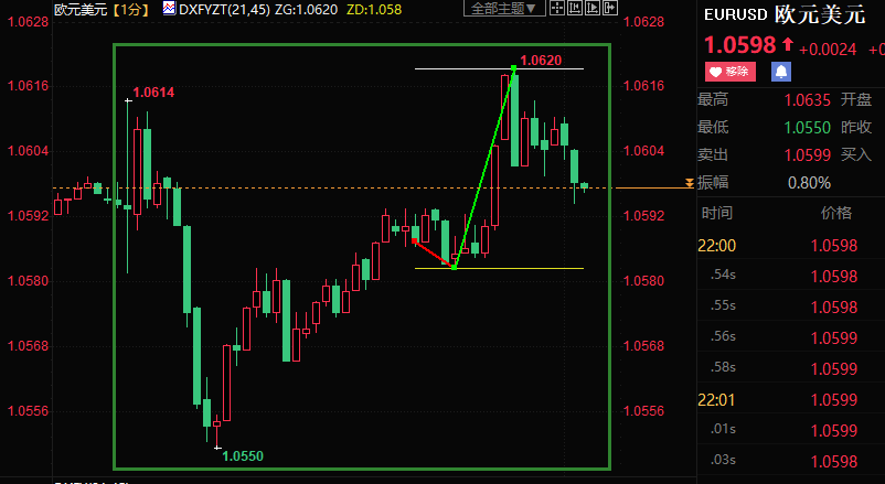 欧元兑美元上涨32点至1.0620。
