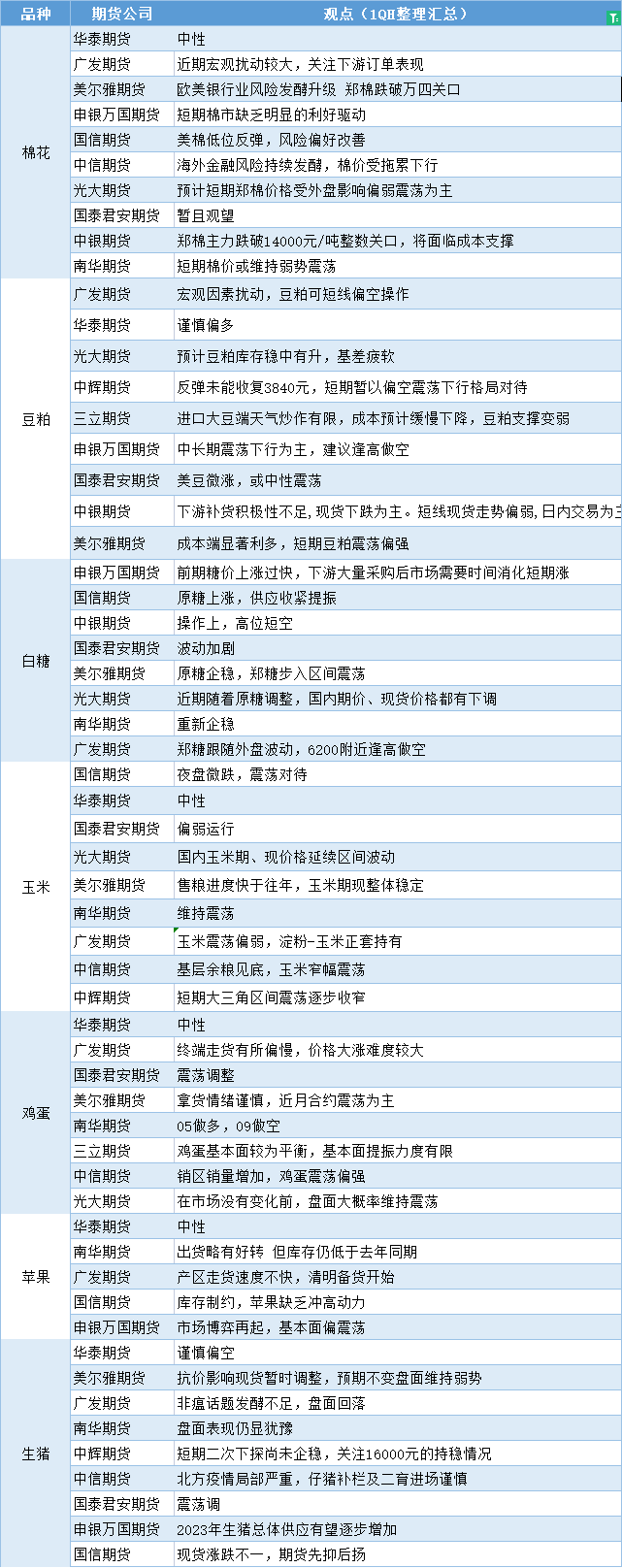 标题:期货公司观点汇总一张图:3月17日农产品(棉花、豆粕、白糖、玉米、鸡蛋、生猪等)