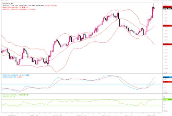 近期金价维持强劲的升势,主要因欧美银行业的担忧情绪支持了避险金价。为了缓解消费者的担忧,财政部长珍妮特耶伦、美联储主席鲍威尔周日晚间发表联合声明称,政府将保护签名银行和硅谷银行持有的所有存款。分析认为:尽管做出了保证,传染风险似乎仍在增加。随着消费者继续将资金转移到更大的银行,所有区域性银行都面临倒闭的风险。现在没有人是安全的,因此黄金可能比任何时候都开始具备上升的理由。目前市场焦点转向本周三美联储3月的利率决议。事实上,市场现在对即将于3月21-22日召开的FOMC货币政策会议上出现25个基点的较小升幅的可能性进行了定价。这一点从美国国债收益率的新一轮下跌中可以看出,并成为对美元下行压力的一个关键因素。市场将密切关注的是美联储对经济衰退的描述。据华尔街日报报道,在经历硅谷银行倒闭后,那些相信美国将避免衰退的人就不那么肯定了。高盛最近将其对美国经济衰退的预期从25%提高到35%。高频经济公司预测分析师表示,她希望看到更多的证据,然后才能改变她的不发生衰退的预测。如果发生银行危机或更广泛的金融市场崩溃,家庭和企业就会缩减开支,经济增长就会放缓,经济前景就变得更加不确定。若经济前景陷入衰退之中,对于美联储在2023年底降息预期必然会提升。而黄金或也就会因此迎来其高光时期。