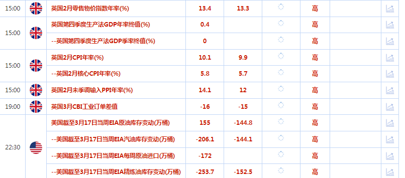 标题:3月22日财经早餐:市场静待美联储决议上场,美债收益率跳升,金价回落约2%