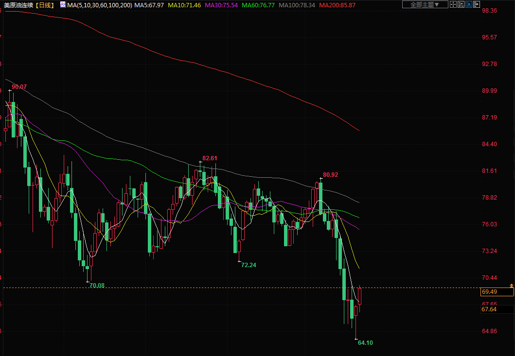 商品收盘情况:布伦特原油收盘上涨2.1%,报每桶69.33美元,美国原油收盘上涨2.5%,报69.33美元。美国期金下跌2.1%,结算价报1941.10美元。