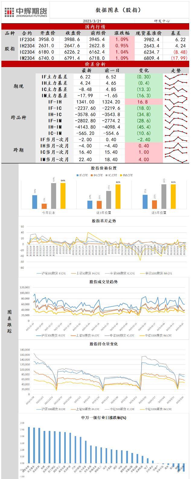 标题:中辉期货股指日报20230321:风险暂时缓和,股指集体反弹