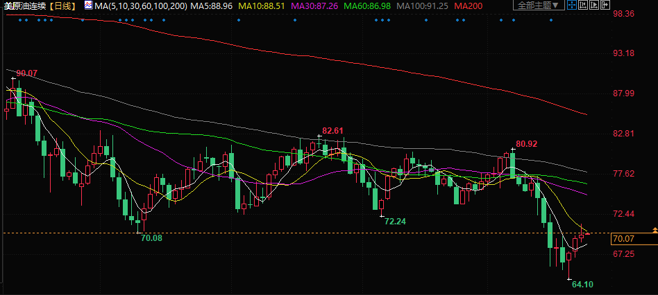 美原油现报70.10美元/桶。