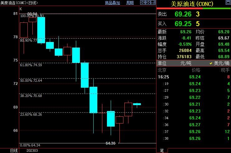 NYMEX原油近期上看70.68美元