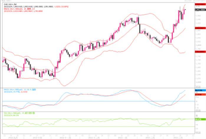 技术层面上,金价昨日继续强势反弹,继突破1962.50美元/盎司,并收于这一水平上方后,重新激活看涨趋势情景,并为金价进一步上升铺平道路。金价首个看涨目标位于2000.00美元/盎司,若突破该位,金价有望延续升势至2040.00美元/盎司。从4小时图来看,50周期移动均线对金价构成支撑。值得注意的是,随机指标正在失去正面动能,这可能迫使金价出现暂时性的横盘波动,然后再继续预期中的上升走势。另一方面,我们要指出的是,假如金价形成双顶态势并跌破1962.50美元/盎司,黄金将有可能继续面临反复的整理交易过程。