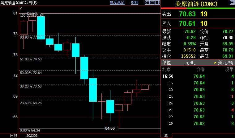 周四(3月23日),国际油价小幅走低,美联储主席鲍威尔强调世界最大经济体面临信贷风险,且上周美国原油库存增幅超过预期。但美元疲软让油价仍有上行空间。NYMEX原油后市上看72.64美元。