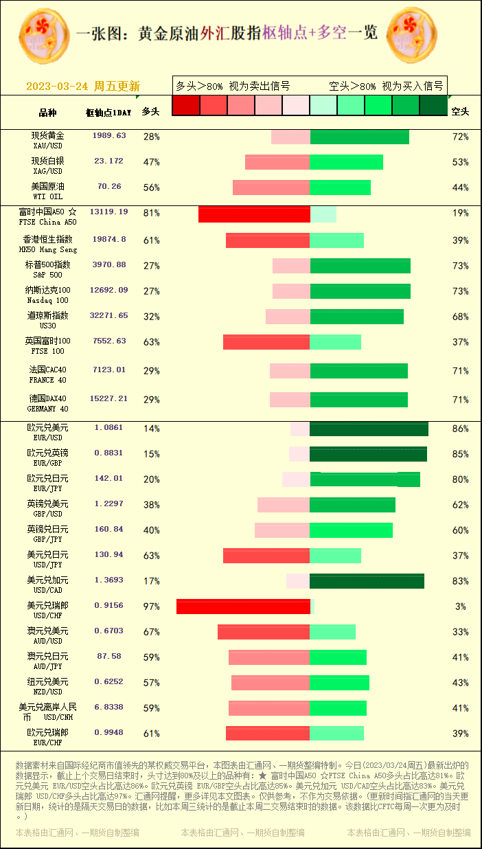 一张图:黄金原油外汇股指"枢纽点+多空占比"一览(2023/03/24周五)
