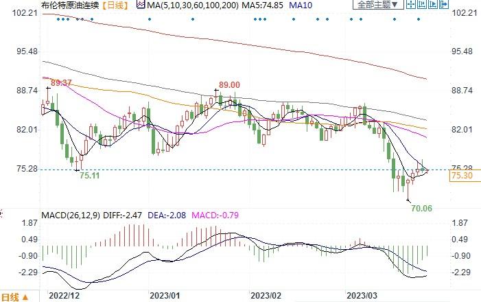 布伦特原油价格反弹至每桶75美元,WTI原油价格回升至每桶70美元以上。