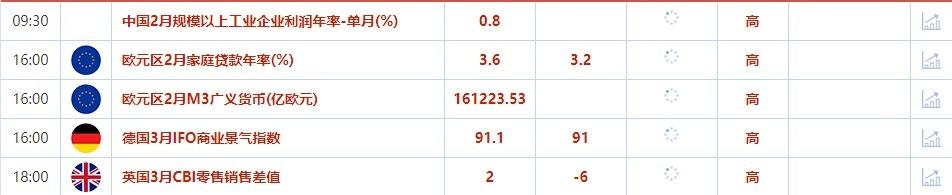 需要关注的大事:北京时间3月27日23:00,欧洲央行执委施纳贝尔发表讲话;北京时间3月28日01:00,英国央行行长贝利在伦敦经济学院发表讲话;3月28日晚些时候,