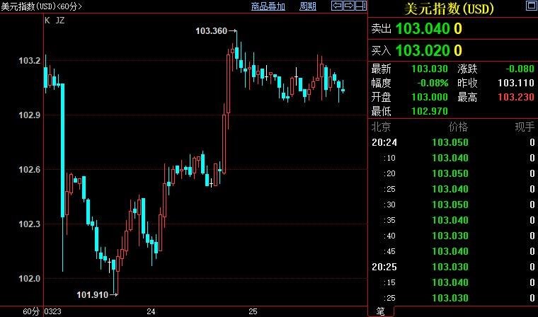 美元指数上周五(3月24日)大幅反弹逾0.5%,降低了黄金的吸引力。