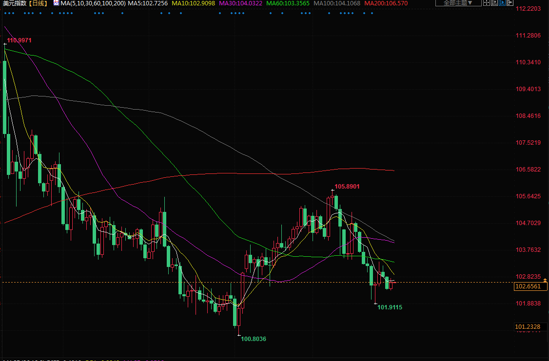 美元指数当日上涨0.18%,报102.67,从上周末触及的101.91的近七周低位回升。