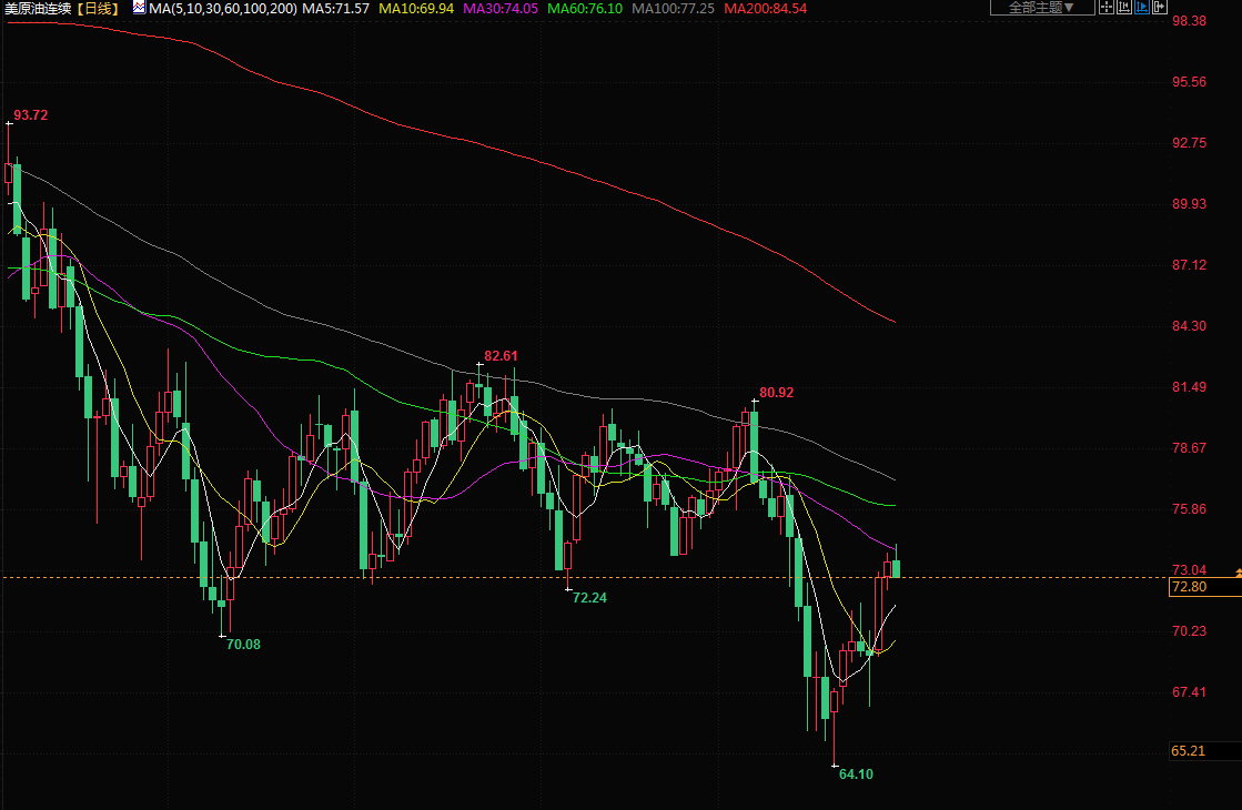 商品收盘情况:布伦特原油期货收盘下跌0.5%,报每桶78.28美元,而美国原油期货下跌0.3%,报72.97美元。美国期金收低0.3%,结算价报1966.90美元。