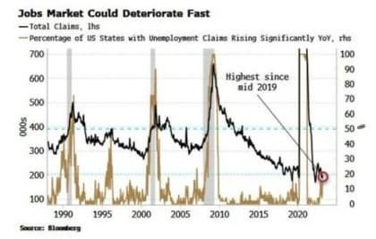 图1:就业市场可能快速恶化(红圈表示自2019年年中以来最高)