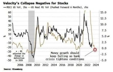 图3:股市流动性崩溃变负(红圈表示,随着银行危机收紧金融状况,货币增长应保持下降)
