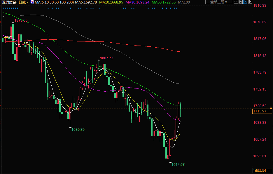 美元在周二创下2020年3月以来最差单日表现之后,周三上涨超过1%,使得黄金对其他货币持有者的吸引力降低,指标美国10年期国债收益率也有所攀升。