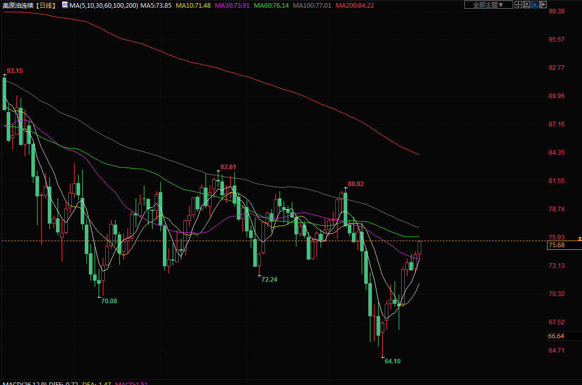 商品收盘情况:交易最活跃的6月