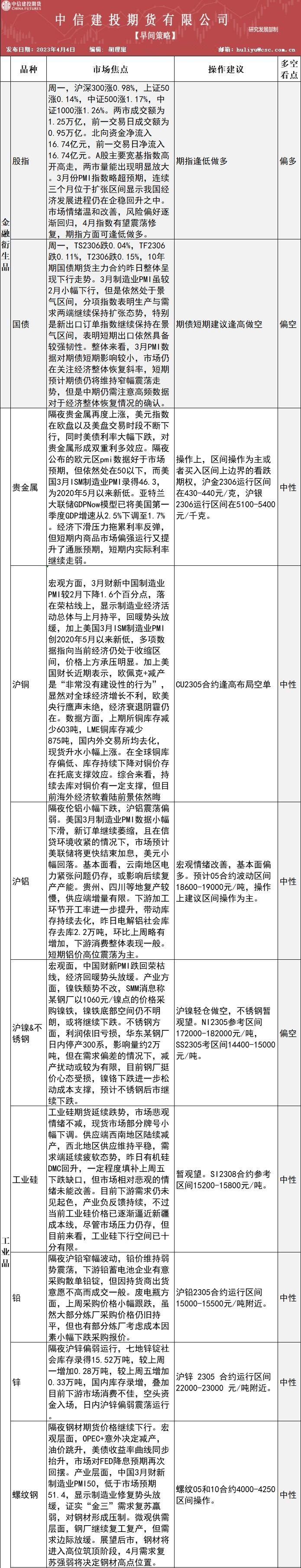 标题:中信建投期货4月4日早间交易策略