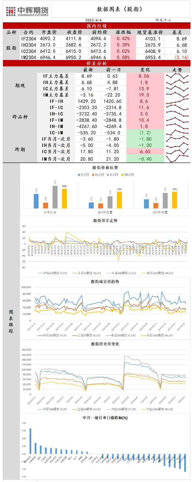 标题:中辉期货股指日报20230404:结构化行情延续,市场放量上涨