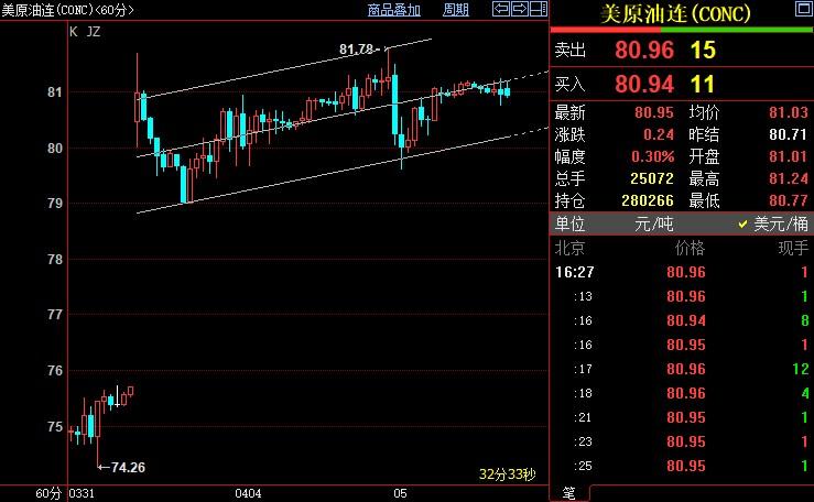 周三(4月5日),国际油价上涨,受美国原油库存下降预期以及石油输出国组织及其合作伙伴(OPEC+)最新宣布的减产措施提振。但技术上油价短线可能回调,NYMEX原油下方支撑在80.50美元。