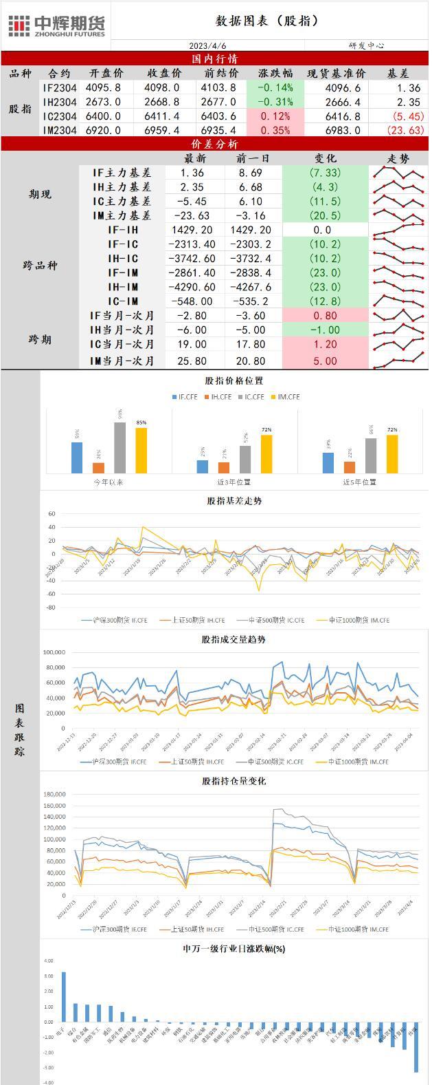 标题:中辉期货股指日报20230406:中美经济景气错位,股指走势延续分化