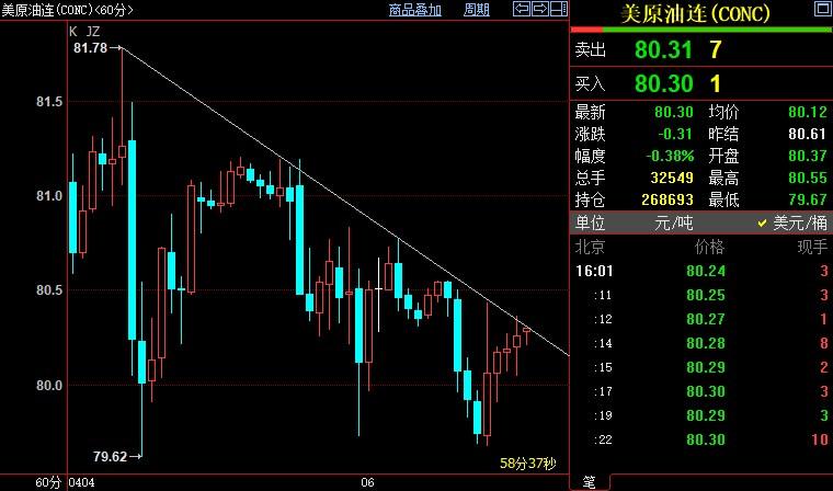周四(4月6日),国际油价下跌,由于疲弱的美国经济数据引发了对潜在需求减少和全球经济衰退的担忧,尽管美国石油库存下降限制了油价跌幅。NYMEX原油须站稳80.35美元上方才能重启涨势。