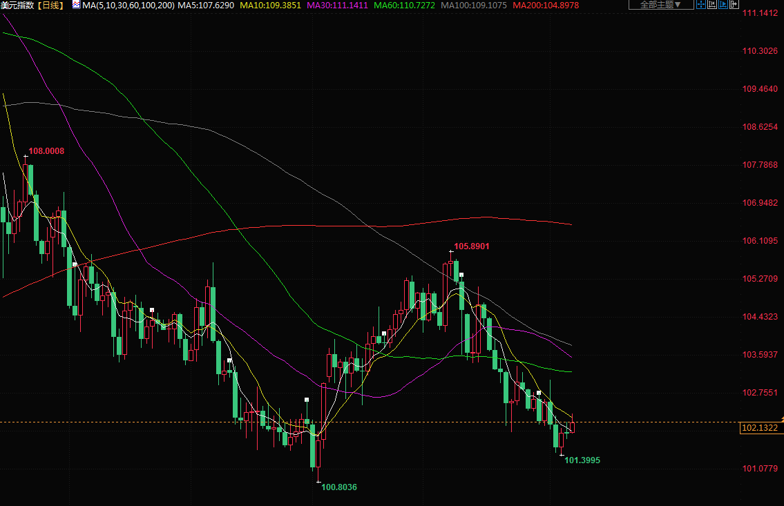 美元指数上涨0.1%至102.03。
