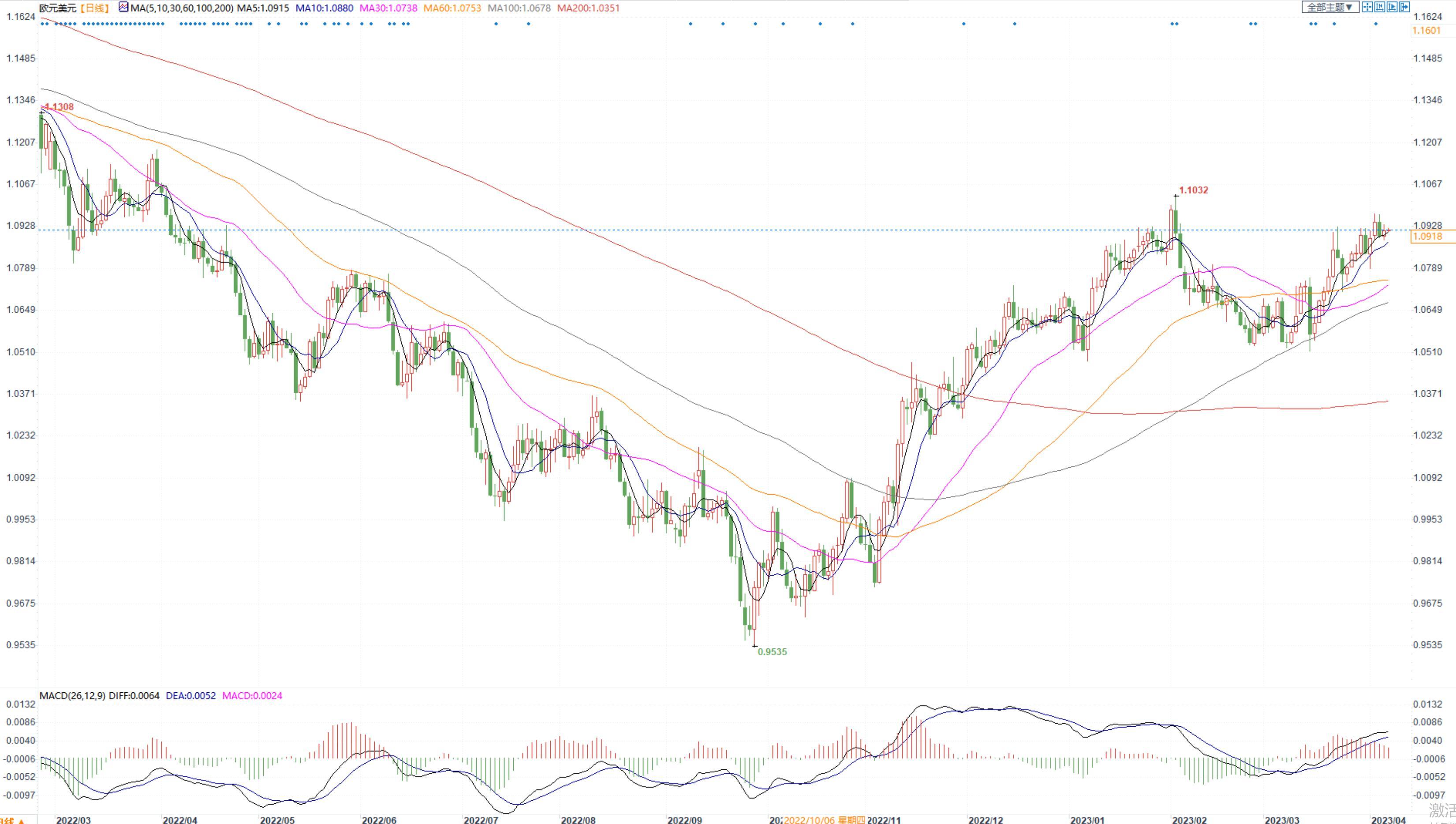 欧元兑美元推高至1.10。