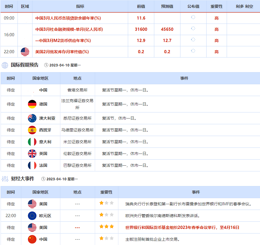 周一(4月10日)关键词:复活节假期