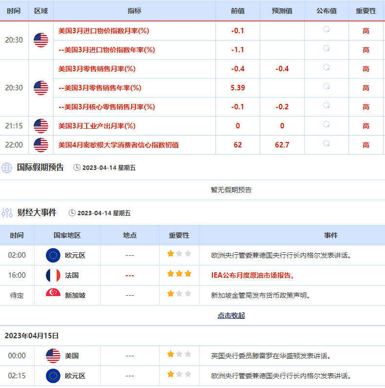 周五(4月14日)关键词:美国3月零售销售数据