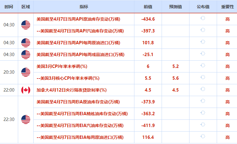 周三(4月12日)关键词:美国CPI、美联储会议纪要、加拿大央行利率决议