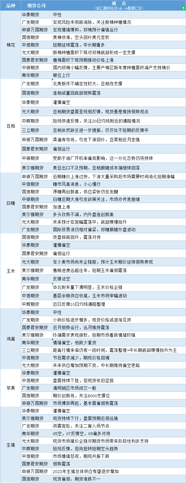 标题:期货公司观点汇总一张图:4月7日农产品(棉花、豆粕、白糖、玉米、鸡蛋、生猪等)