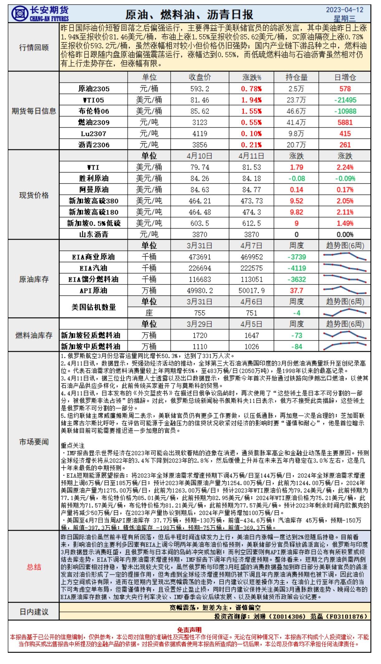 标题:长安期货4月12日原油早评:鸽派发言提振油价,日内关注美3月通胀数据指引