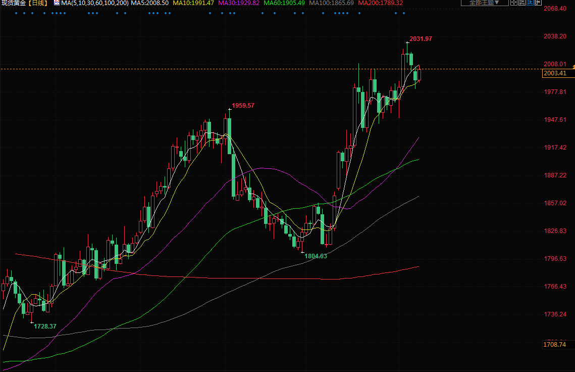 黄金周二重新攀升至2000美元的关键水平之上,因美元从上一交易日的峰值回落,同时交易员们在场外静待美国通胀数据,以寻找未来加息的线索。