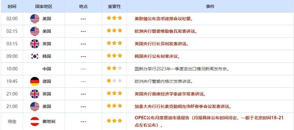 汇通财经APP讯——4月13日,投资者需要关注的重点数据:澳大利亚3月季调后失业率,澳大利亚3月就业人口变动,中国3月贸易帐,英国2月工业产出月率,英国2月GDP月率,美国截至4月8日当周初请失业金人数,美国截至4月1日当周续请失业金人数,美国3月PPI年率。需要关注的大事件包括韩国央行公布利率决议,英国央行首席经济学家皮尔发表讲话,加拿大央行行长麦克勒姆在IMF春季会议发表讲话,OPEC公布月度原油市场报告。