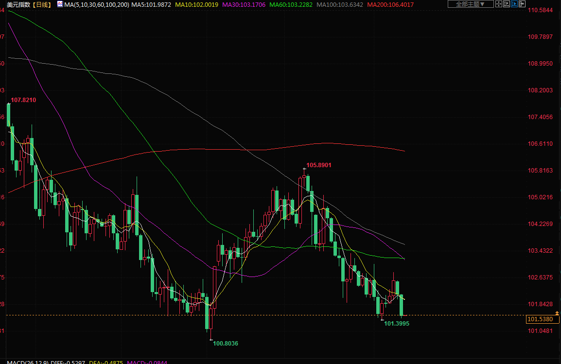美元指数当日下跌0.60%,至101.49,低于数据公布前的102.11左右。欧元达到1.10005美元,为2月2日以来最高,纽约尾盘报1.09930美元,当日上涨0.73%。