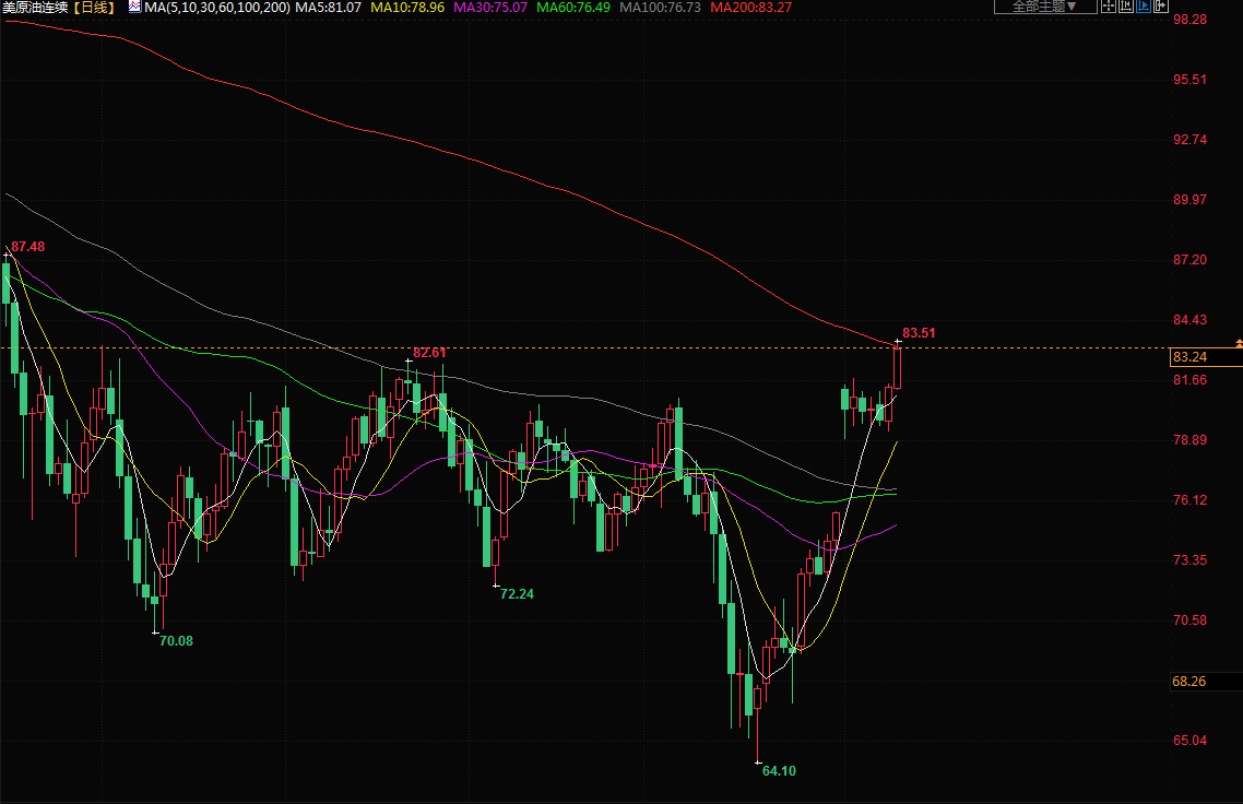 美原油期货收涨2.1%,报83.26美元。美国期金上涨0.3%,至2025.30美元。