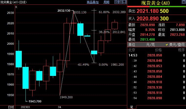 现货黄金上涨0.64%至2027.17美元/盎司;COMEX期金主力合约上涨0.83%至2041.7美元/盎司;