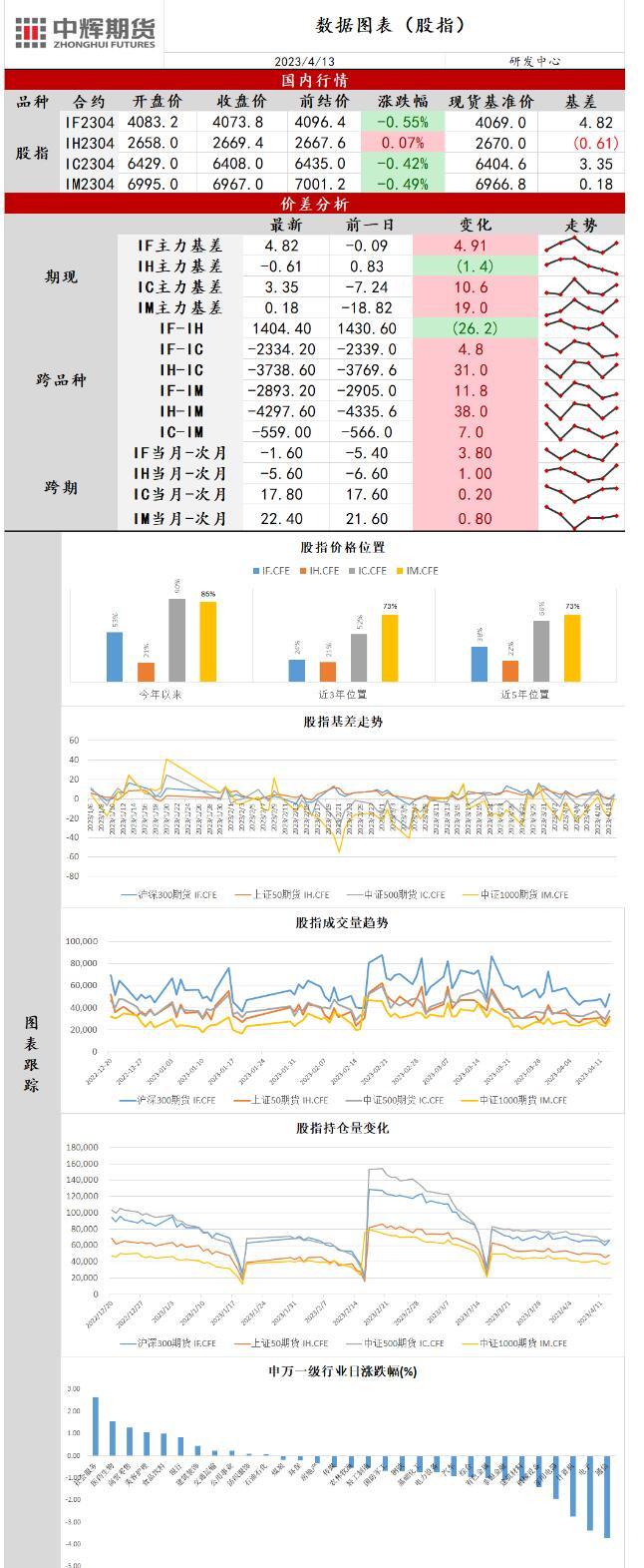标题:中辉期货股指日报20230413:资金分歧加大,指数集体调整