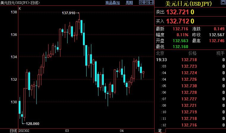 美元兑日元上涨约0.5%,盘中创四周新高134.041。日本央行新行长植田和男走马上任。他表示,希望有更多时间来判断工资增长的持续性是否足以使通胀稳定在央行2%的目标,这表明他不会急于缩减大规模刺激措施。