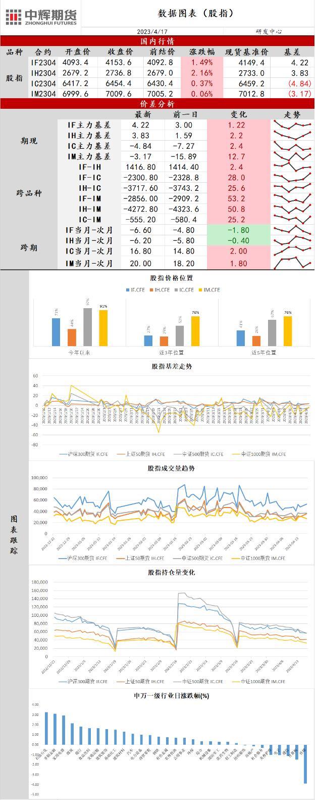 标题:中辉期货股指日报20230417:经济稳步修复,股指全线收涨