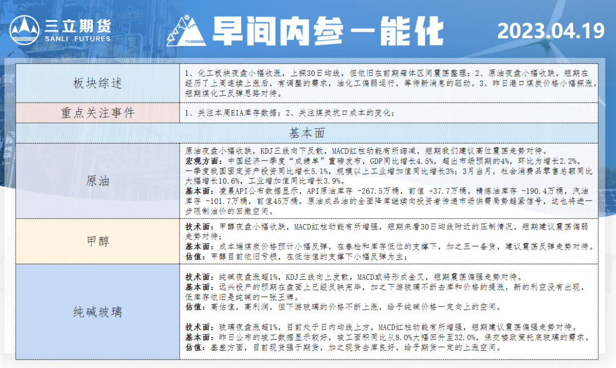标题:三立期货4月19日早间内参——能化