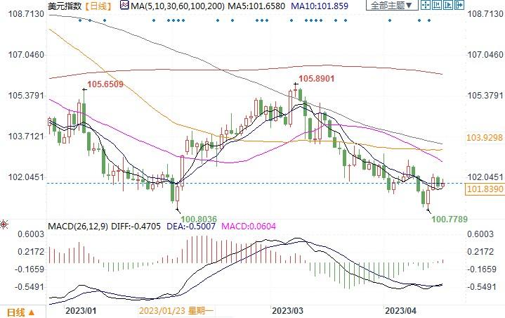 Otunuga周二表示:“这次‘美联储讲话’将是市场的主要关注点,尽管市场也应该关注周四公布的美国每周初次申请失业救济人数和周五公布的美国4月份PMI数据。”Otunuga补充说:“美指低于102.00的持续疲软可能会导致抛售,回落至100.79和100.00,这是2022年4月以来从未有过的水平。”