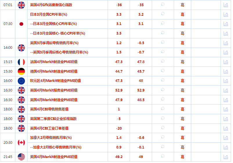 标题:4月21日财经早餐:疲软数据支持美国经济衰退预期,金价重返2000美元/盎司关口之上