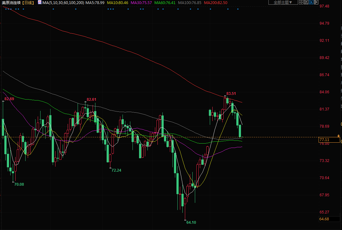 布伦特原油期货收于每桶81.10美元,下跌了2.4%。美国原油收于每桶77.29美元,下跌2.4%。