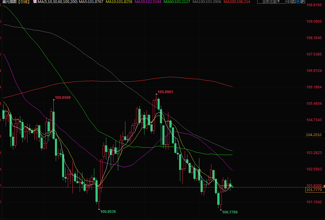 美元指数下滑0.1%至101.84。上周五曾下滑至2月初以来的最低点。