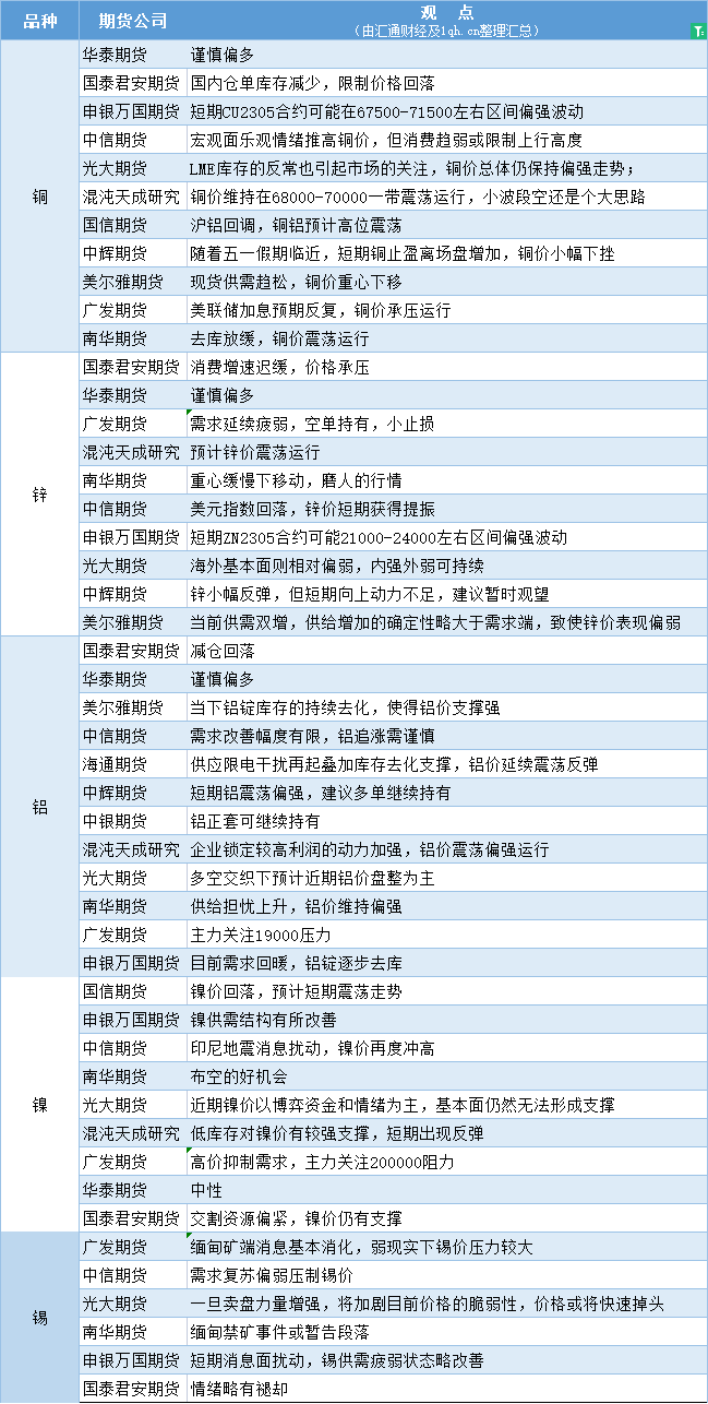 标题:期货公司观点汇总一张图:4月21日有色系(铜、锌、铝、镍、锡等)