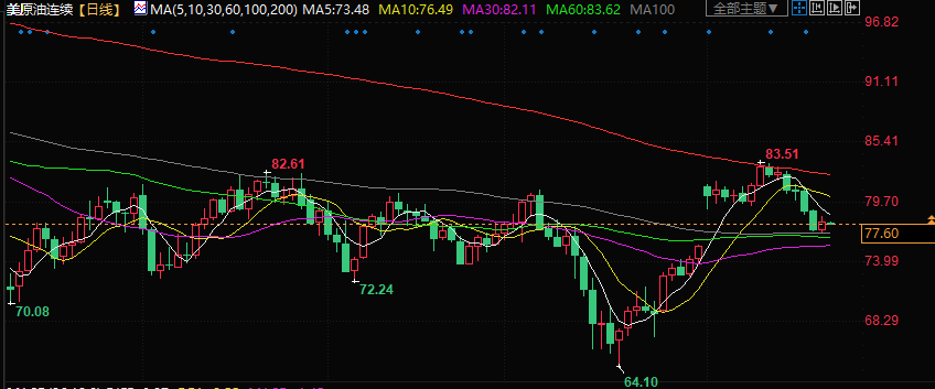 美原油交投于77.48美元/桶附近;油价上周五因欧元区和英国强劲的经济数据而走高,但由于利率前景的不确定性影响,油价录得周线下跌。本周关注地缘局势的不确定性风险增加对油价的影响。